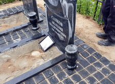 Когда брусчатка подсыхает, переходим к декорированию памятников. У каждого надгробья устанавливаем траурную урну для цветов, изготовленную из чёрного гранита.